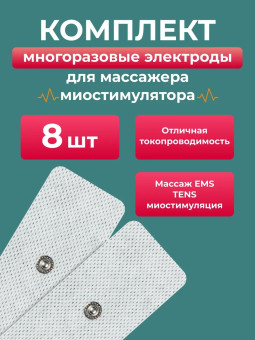 Комплект самоклеящихся электродов (8 шт.) для миостимуляторов Beurer EM80, EM40, EM41, Sanitas и Vupiesse, Bluetens в герметичной запаянной упаковке.