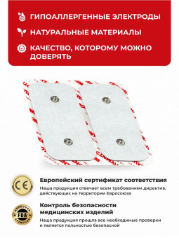 Комплект самоклеящихся электродов (внутри 2 шт.) для миостимуляторов Beurer EM40, EM41, EM80 и Sanitas SEM43 в герметичной запаянной упаковке.