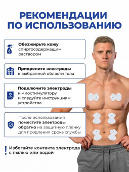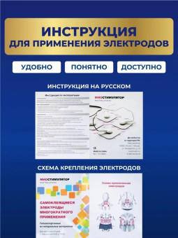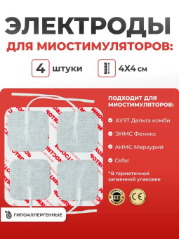 Комплект самоклеящихся электродов (внутри 4 шт.) размера 5 см на 5 см для миостимуляторов: