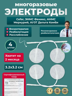 Гипоаллергенные, многоразовые гелевые электроды. Средний срок службы: 20 наклеиваний.
