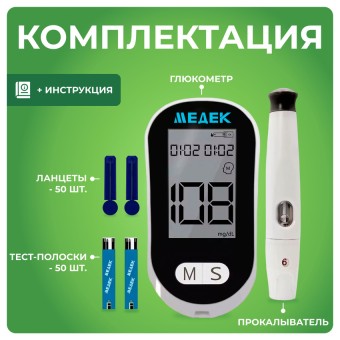 Набор для контроля уровня глюкозы Медек выгоднее на 30% за счет комплектации и высокотехнологичного устройства. Мы заботимся о вашем здоровье.