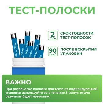 — После вскрытия одной тест-полоски из индивидуальной упаковки тест-полоску следует использовать в течение 3 минут, иначе результат будет неточным.