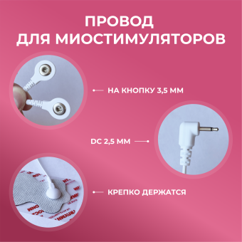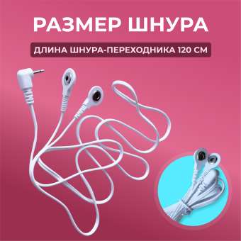 Шнур для миостимуляторов и массажеров на 2 контакта подходит к большому количеству моделей, использующих "кнопочную" систему крепления электродов с диаметром кнопки крепления 3 мм.