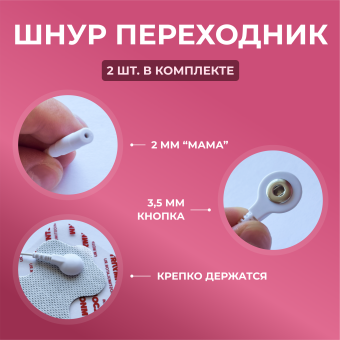 Шнур переходник с крепления электродов типа "штекер" на крепление самоклеящихся накладок с типом "кнопка" для миостимуляторов и электронных массажеров разных производителей.