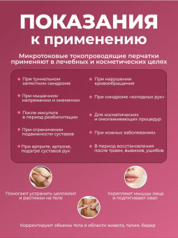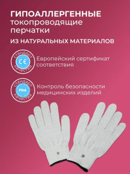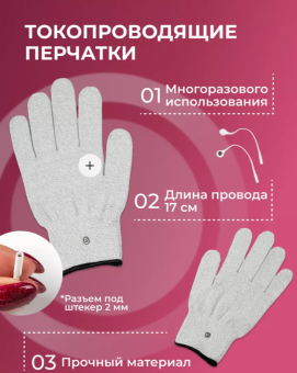 Специализированные перчатки-электроды служат для проведения лечебных процедур электропунктуры, миостимуляции и металлотерапии, а так же эффективно выполняют процедуру лифтинга.